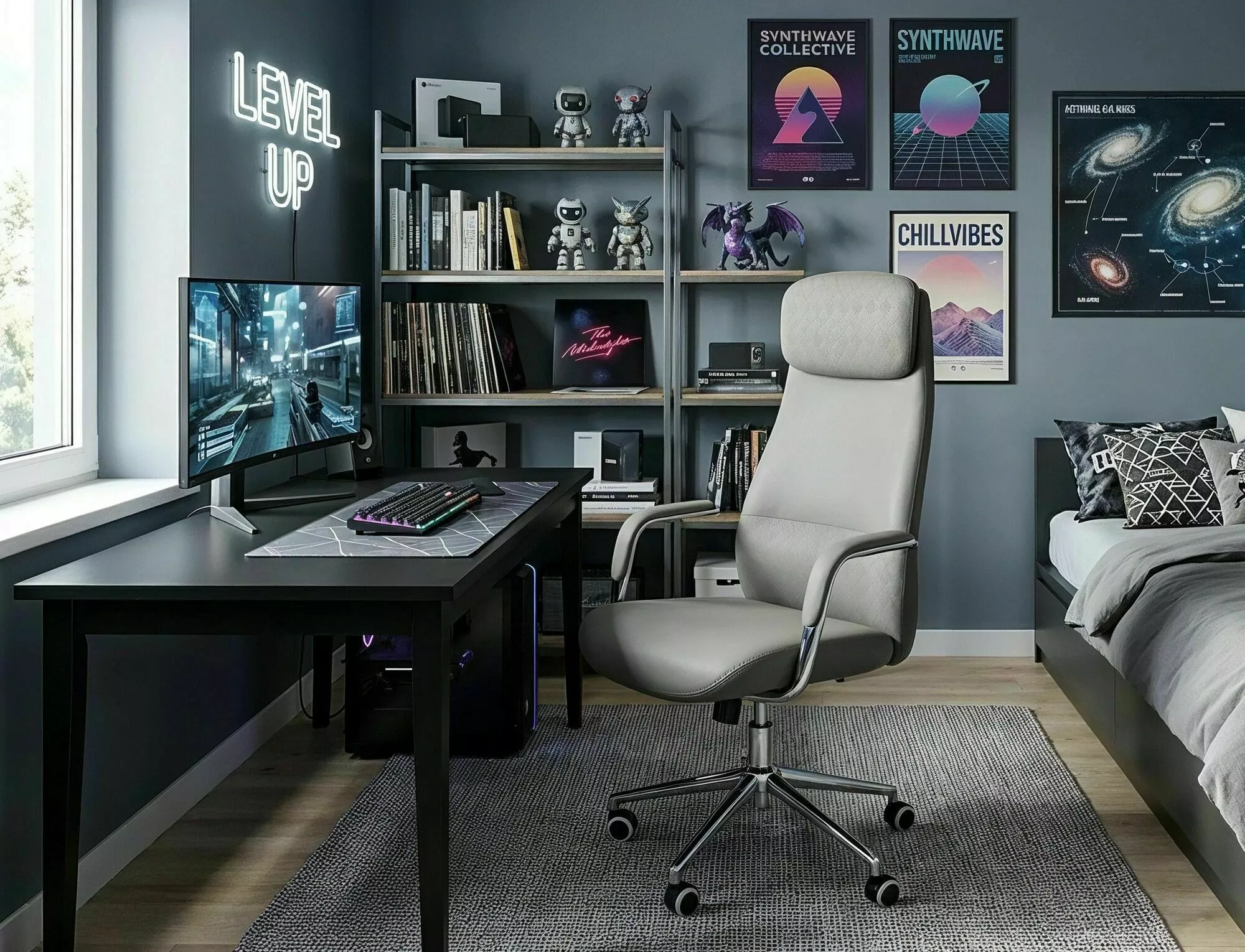 Fotel obrotowy Q-09 w eleganckim szarym kolorze to wygodne i ergonomiczne rozwiązanie do biura lub domowego stanowiska pracy, zapewniające komfort nawet podczas wielogodzinnego użytkowania