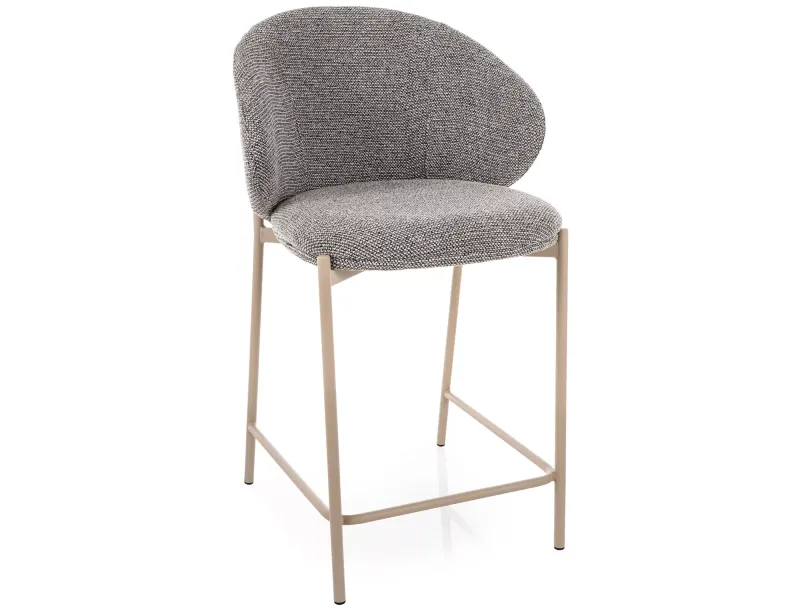 Nowoczesny hoker w całości pokryty przyjemną w dotyku tkaniną to połączenie wyjątkowej wygody i eleganckiego designu. Miękka, tapicerowana forma obejmuje zarówno siedzisko, jak i nogi, tworząc spójną i przytulną bryłę.