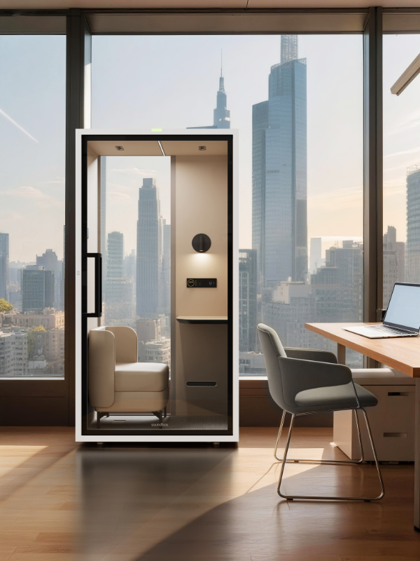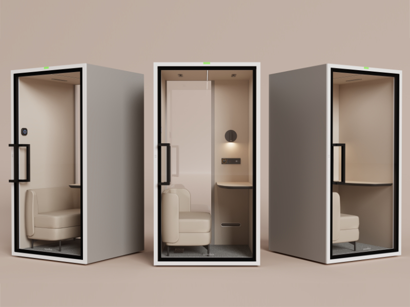Ekskluzywna kabina akustyczna zaprojektowana z myślą o nowoczesnych przestrzeniach biurowych typu open space, reprezentacyjnych urzędach, lotniskach oraz hotelach o wysokim standardzie. Zapewnia idealne warunki do prowadzenia rozmów telefonicznych i telekonferencji, gwarantując pełne skupienie oraz dyskrecję, bez zakłócania pracy otoczenia.